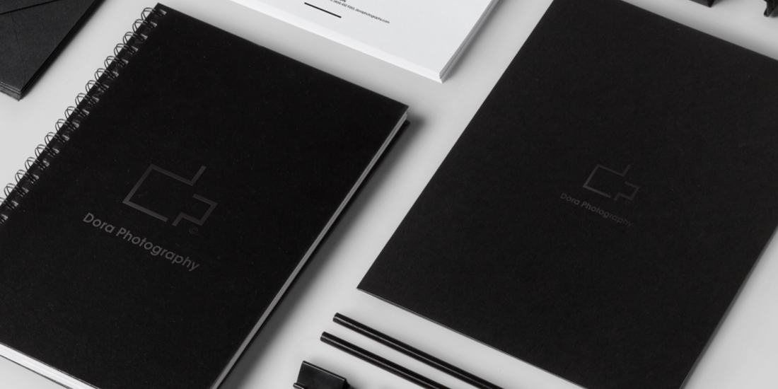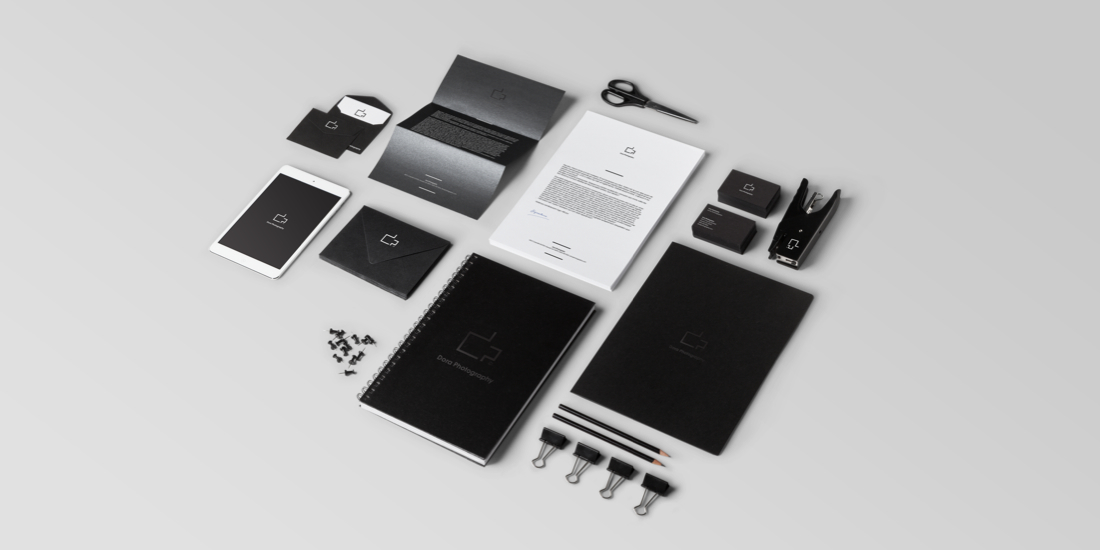 Dora Photography: a brand, identity and logo design project. The logo core element utilises the initials DP representing a box camera design symbolising the company’s brand values in quality photography techniques. The design relies solely on photography elements such as analogue related materials to reinforce brand values of quality, history and preserving memories throughout all the visual devices.